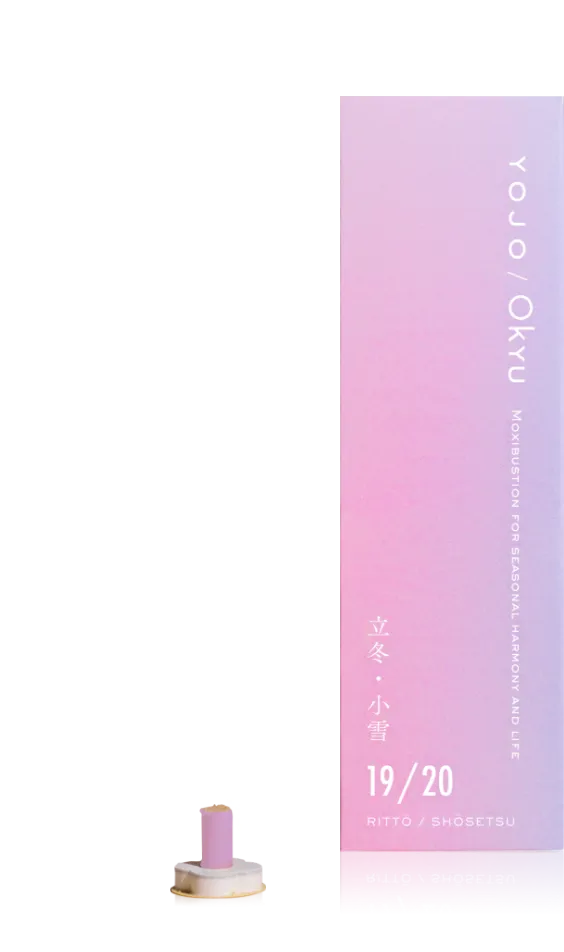 肌にYOJO/OKYUの温もりを感じ、YOJO/OKYUから立ちのぼる香りを感じましょう。心が「今」から離れたら、呼吸に意識を集中しましょう。